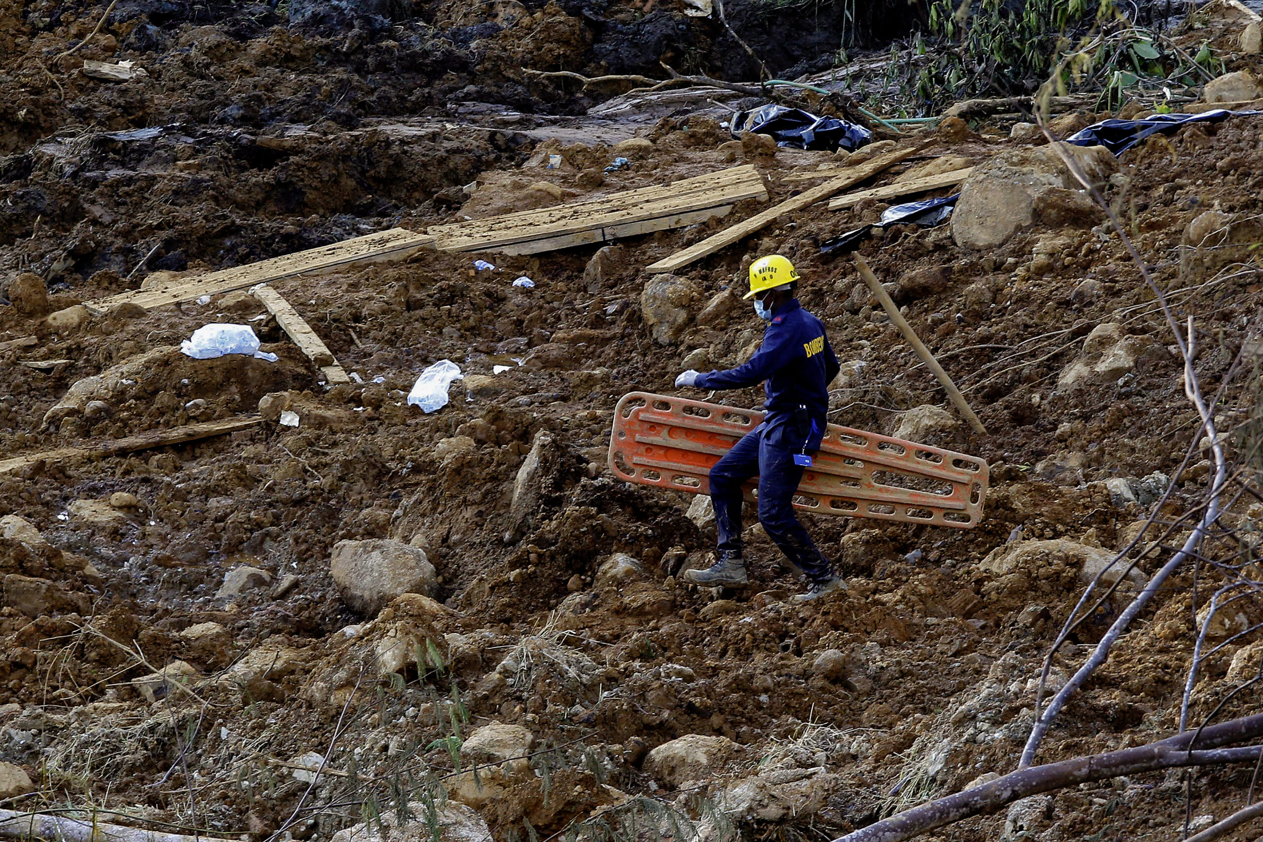 Os trabalhos de resgate foram suspensos à noite pelo risco de novos deslizamentos em uma região próxima ao Pacífico, onde está uma das florestas mais chuvosas do mundo.