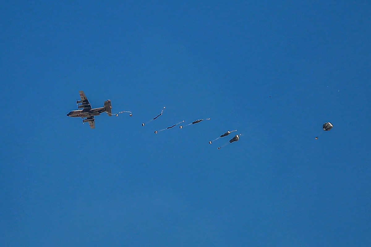 Aeronaves de carga militares dos Estados Unidos lançam suprimentos de alimentação sobre Gaza desde sábado (2), poucos dias após soldados israelenses dispararem contra uma multidão faminta que se aproximou de um comboio de ajuda humanitária.