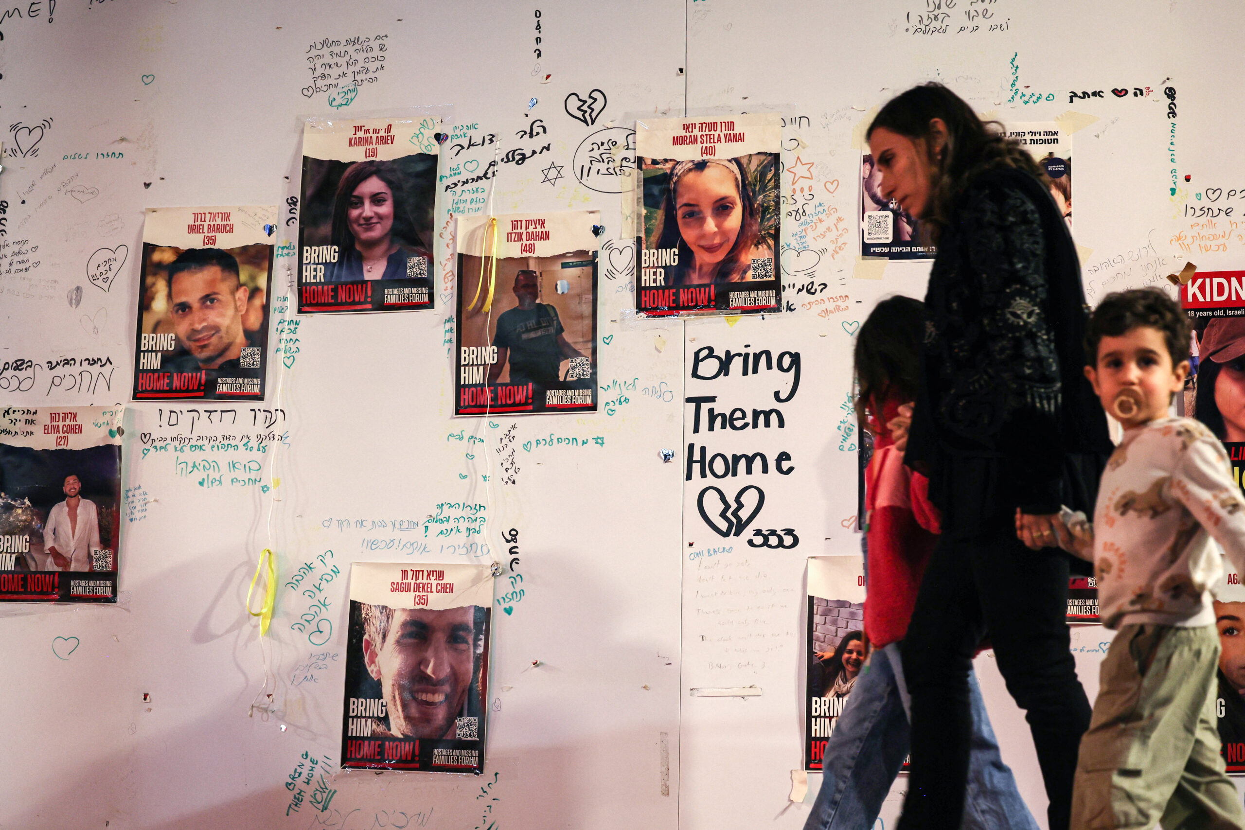 Um dos mais jovens é Kfir Bibas, que tinha apenas nove meses quando foi sequestrado no kibutz Nir Oz, perto da fronteira com Gaza, junto com seu irmão Ariel, de quatro anos, e seus pais Yarden e Shiri. A mãe aparece em um vídeo do dia do ataque com os filhos nos braços e cercada por homens armados.