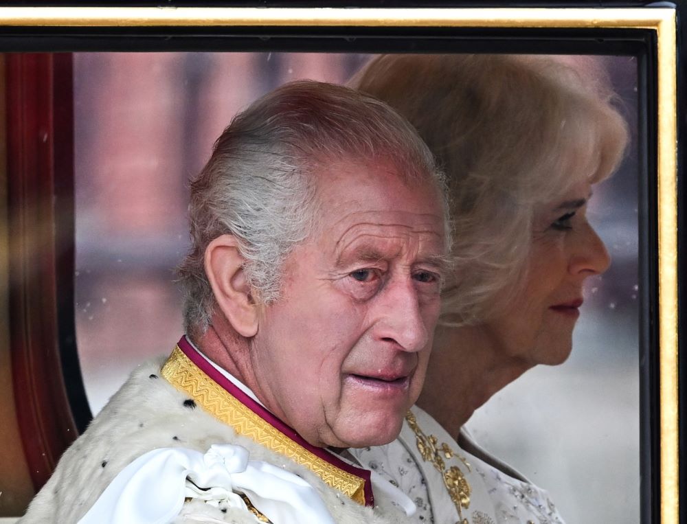 O rei Charles III e sua esposa, a rainha Camilla, saíram neste sábado (6) em uma carruagem do Palácio de Buckingham para uma curta procissão até a Abadia de Westminster, em Londres, onde serão coroados em uma cerimônia solene.