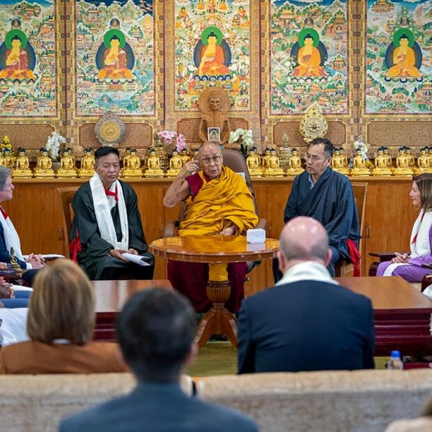 A delegação de alto nível, liderada pelo deputado republicano Michael McCaul, incluía a democrata Nancy Pelosi, ex-presidente da Câmara dos Representantes e chegou na terça-feira (18) à cidade indiana, onde o Nobel da Paz se refugiou desde um fracassado levante contra o regime chinês em 1959. Além disso, eles se encontraram com autoridades do governo do Tibete no exílio, que querem mais autonomia para o Tibete.