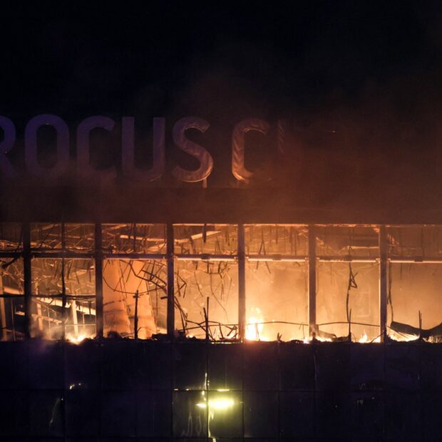 Quatro homens armados invadiram a casa de shows Crocus City, perto de Moscou, em 22 de março, abriram fogo contra o público e incendiaram o prédio.