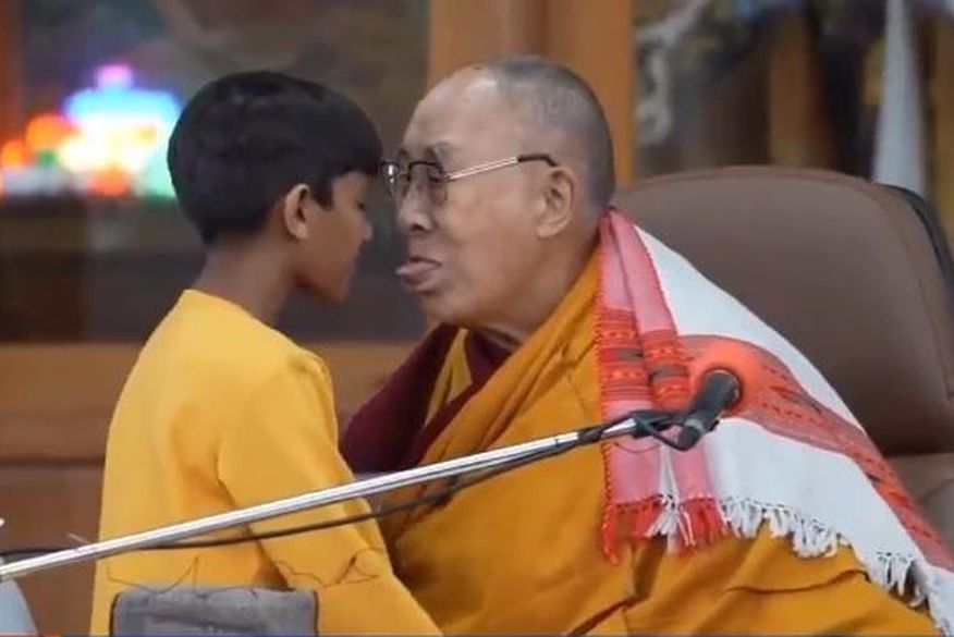 Em um vídeo que se tornou viral, o dalai lama, de 87 anos, pergunta ao menino “você pode chupar minha língua?” e então ele mostra a língua, desencadeando a hilaridade dos presentes.