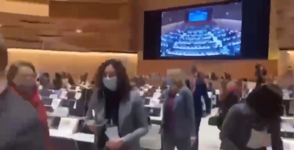Representantes de países como Venezuela, Iêmen, Argélia, Síria e Tunísia permaneceram na sala. Vídeo publicado pelo jornalista Jamil Chade, no Twitter, indica que o diplomata do Brasil também seguiu no local e não participou do boicote.