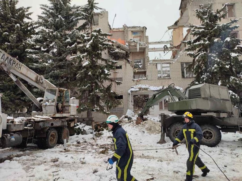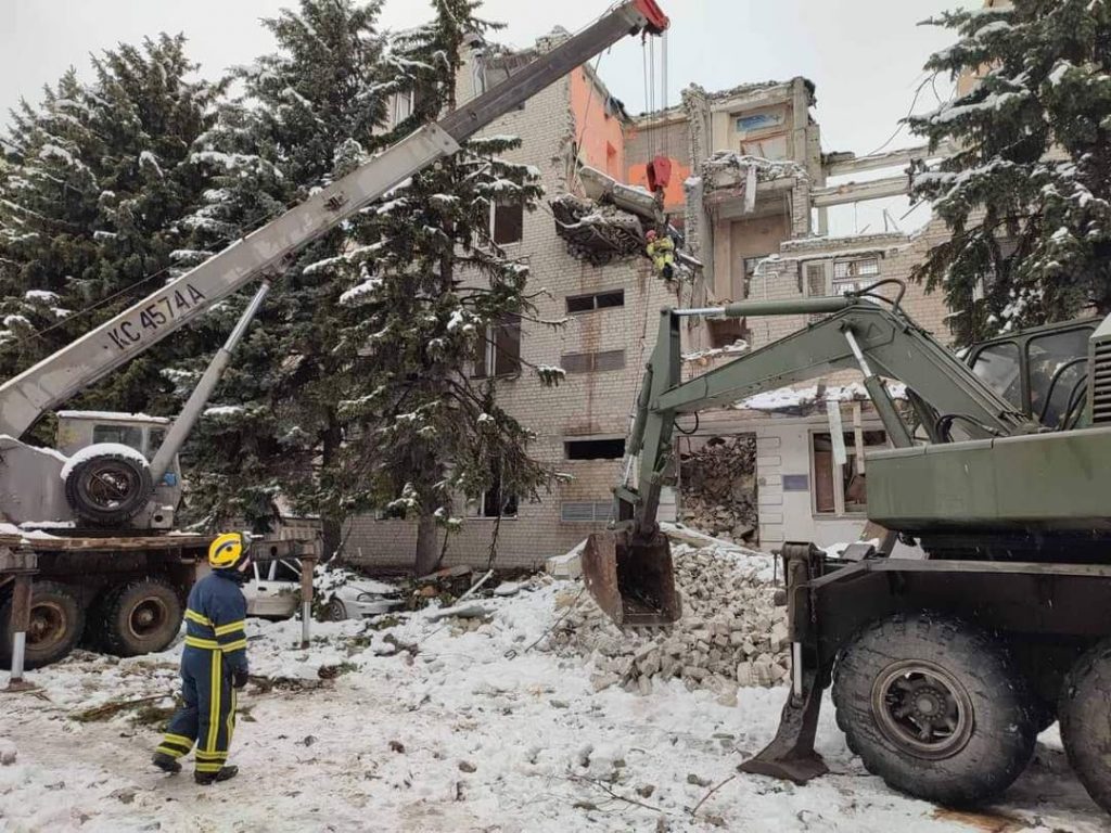 Na cidade ucraniana de Kharkiv, integrantes do Centro Inter-regional de Desminagem Humanitária e Resposta Rápida do Serviço do Estado da Ucrânia realizam operações de resgate de emergência nos edifícios que foram atingidos e destruídos por bombardeios russos.