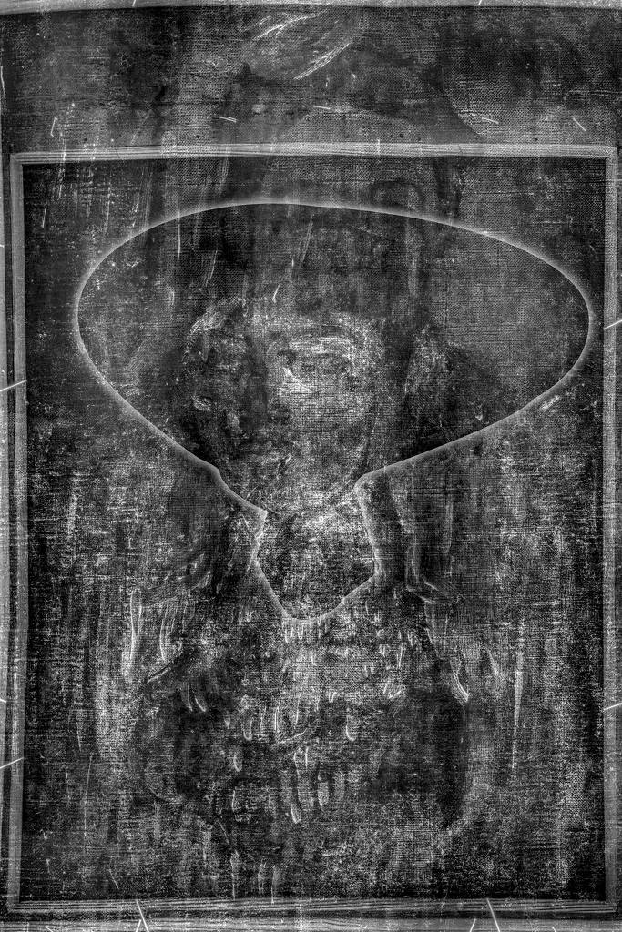 O retrato foi encontrado atrás da tela, coberto por camadas de cola e papelão, que aparentemente foram colocadas antes de uma exposição no início do século 20.