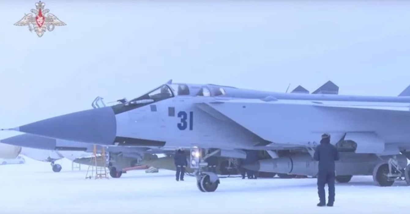O Ministério da Defesa da Rússia afirmou que três caças MiG-31 com mísseis hipersônicos Kinzhal chegaram à base aérea de Chkalovsk, no enclave de Kaliningrado, no Mar Báltico, como parte de “medidas adicionais de dissuasão estratégica”. Os aviões de guerra serão colocados em alerta 24 horas por dia, disse o órgão.