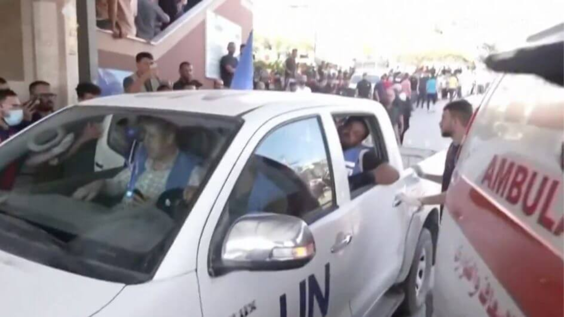 Imagens gravadas em um hospital da região mostram pelo menos três funcionários, com trajes da ONU, em macas.