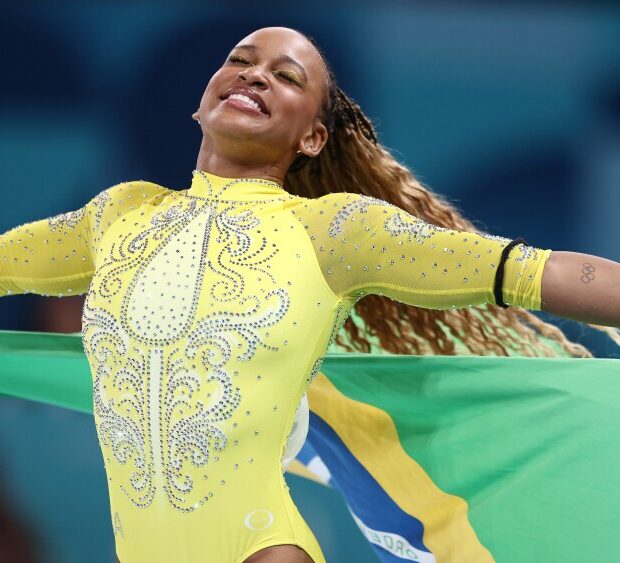 A ginasta Rebeca Andrade é uma das três brasileiras que aparecem entre as 100 mulheres mais influentes ao redor do mundo em 2024, listadas pela BBC (empresa pública britânica de comunicação) divulgada nesta terça-feira (3). Entre as justificativas para Rebeca integrar o seleto grupo está o fato de ela ter se tornado a maior medalhista olímpica da história do Brasil, com seis pódios (dois ouros, três pratas e um bronze), durante dos Jogos de Paris. Outras duas brasileiras também estão na relação da BBC: Lourdes Barreto (ativista de direitos das prostitutas) e Silvana Santos (bióloga). Outros nomes relevantes na relação são o da iraquiana Nadia Murad, ativista de direitos humanos e ganhadora do Prêmio Nobel da Paz; da francesa Gisèle Pelicot, ativista na defesa de direitos das mulheres, e da atriz norte-americana Sharon Stone, por seu empenho em atividades de apoio a pessoas com HIV (vírus da imunodeficiência humana).