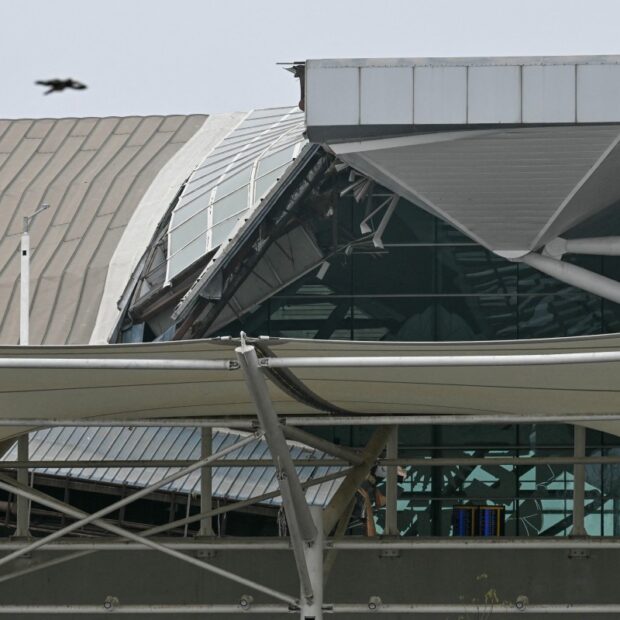 Todas as partidas de voos do Terminal 1 foram temporariamente suspensas enquanto as equipes de resgate removiam os escombros para resgatar as pessoas presas no local, informou a autoridade aeroportuária.