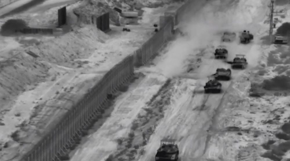 Imagens de vídeo divulgadas pelo Exército mostram uma coluna de veículos blindados e escavadeiras que atravessam o que parece ser uma cerca de fronteira.