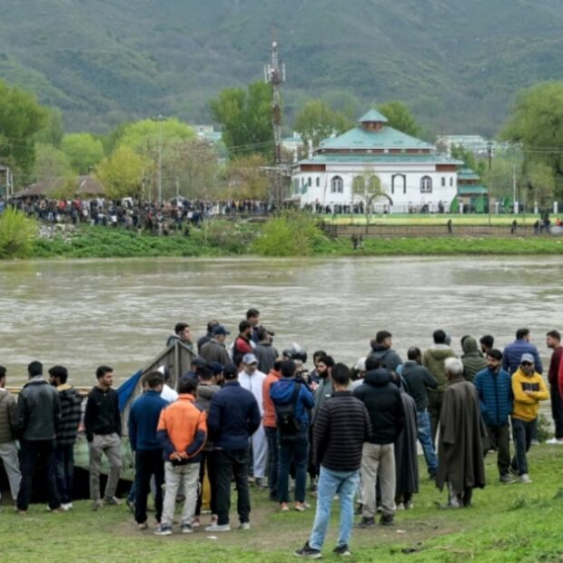 O bote virou no rio Jhelum, na cidade de Srinagar.