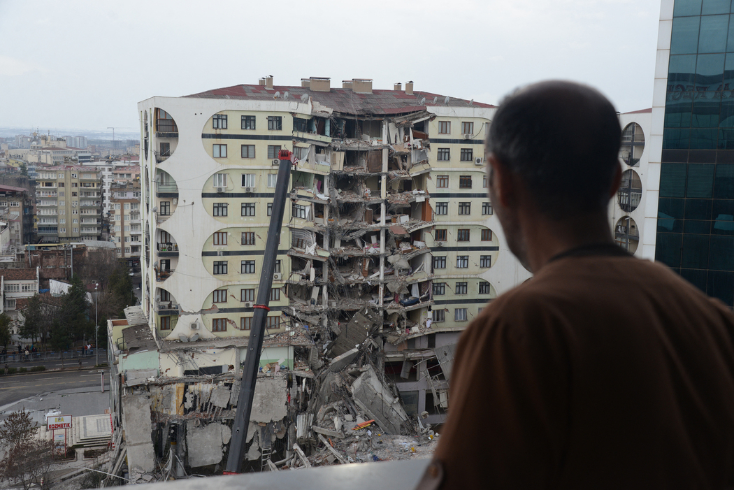 Este homem de 35 anos ofereceu ajuda para as equipes de resgate que trabalham nas ruínas de um edifício em Diyarbakir.