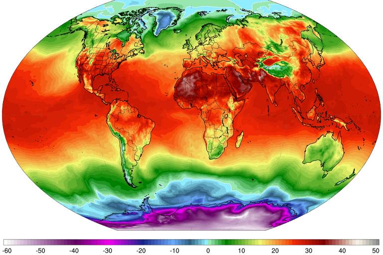 E a tendência prossegue em julho: a segunda-feira 3 foi o dia mais quente já registrado na Terra, em qualquer mês, de acordo com os dados preliminares dos Centros Nacionais de Previsão Ambiental dos Estados Unidos.