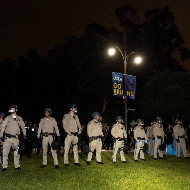 Os manifestantes detidos foram colocados sentados com as mãos presas com zíper atrás das costas. “Palestina livre!”, grita um deles na última fileira. Minutos depois, outros carros policiais começaram a limpar a área. “A única coisa que restou foram as barracas e seus pertences”, disse Carlos Nieves, comissário assistente de informações públicas do departamento de polícia no início da madrugada de quarta-feira, 1, acrescentando que o Hamilton Hall também foi esvaziado. “Não há mais ninguém no prédio”, disse ele.