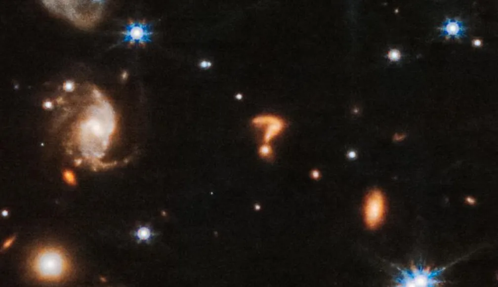 A imagem causou muita curiosidade, mas especialistas informaram se tratar de algo comum no nosso Universo: duas galáxias em processo de fusão. E eles chegaram a essa conclusão pela cor do ponto de interrogação, mais avermelhado.