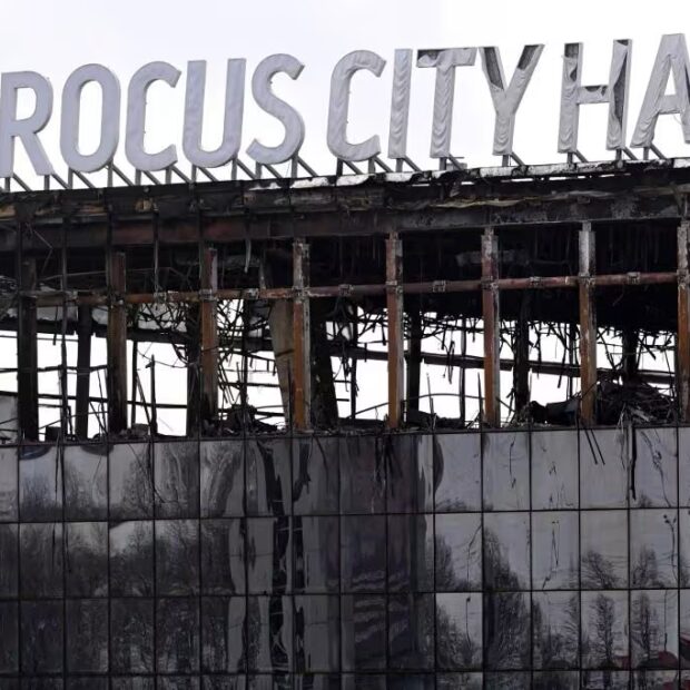 Em 22 de março, homens armados vestidos com roupas de camuflagem abriram fogo na sala de espetáculos Crocus City Hall, nas imediações da capital russa, e depois incendiaram o edifício.