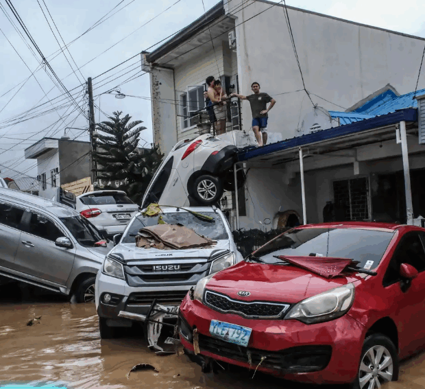Vilarejos inteiros da ilha de Cebu ficaram inundados. Vídeos verificados pela AFP mostram carros, caminhões e contêineres de transporte arrastados pelas águas.