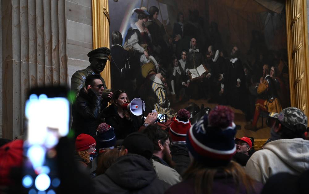 Um fotógrafo da AFP descreveu uma substância esfumaçada no ar no grande espaço circular sob a cúpula do Capitólio enquanto cem ou mais pessoas se reuniam.