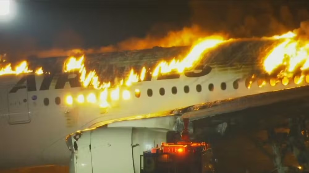 Nesta terça-feira (2), um avião pegou fogo no Aeroporto de Haneda, em Tóquio, no Japão, após uma colisão com uma aeronave da Guarda Costeira, que levaria ajuda para a região que foi atingida por um terremoto no primeiro dia do ano. Estavam a bordo 367 passageiros, e todos foram retirados a tempo.