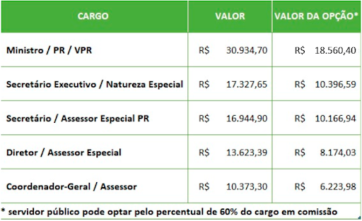do Executivo Federal, o que torna útil conhecer a tabela salarial dos cargos da cúpula dos Ministérios.