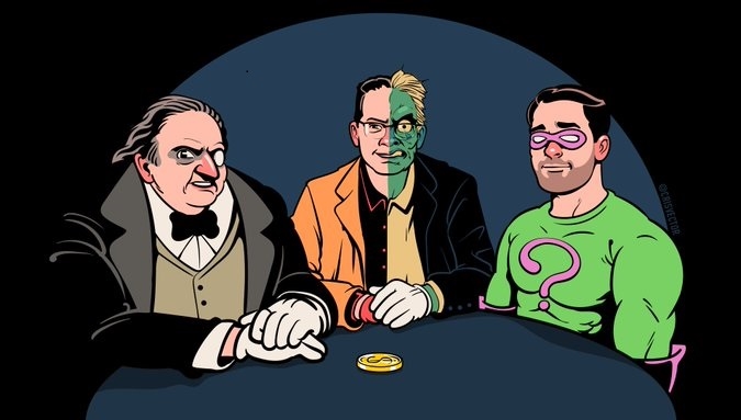 Vilões do Batman: Pinguim, Duas/Caras e Charada. pic.twitter.com/lU25KgpzcD