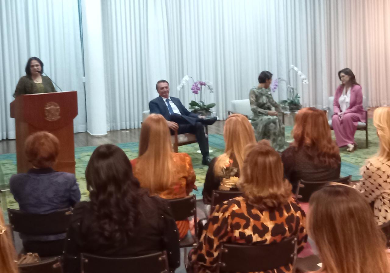 O presidente Bolsonaro destacou as maiores ações de seu governo e ao final foi ovacionado pelas convidadas.