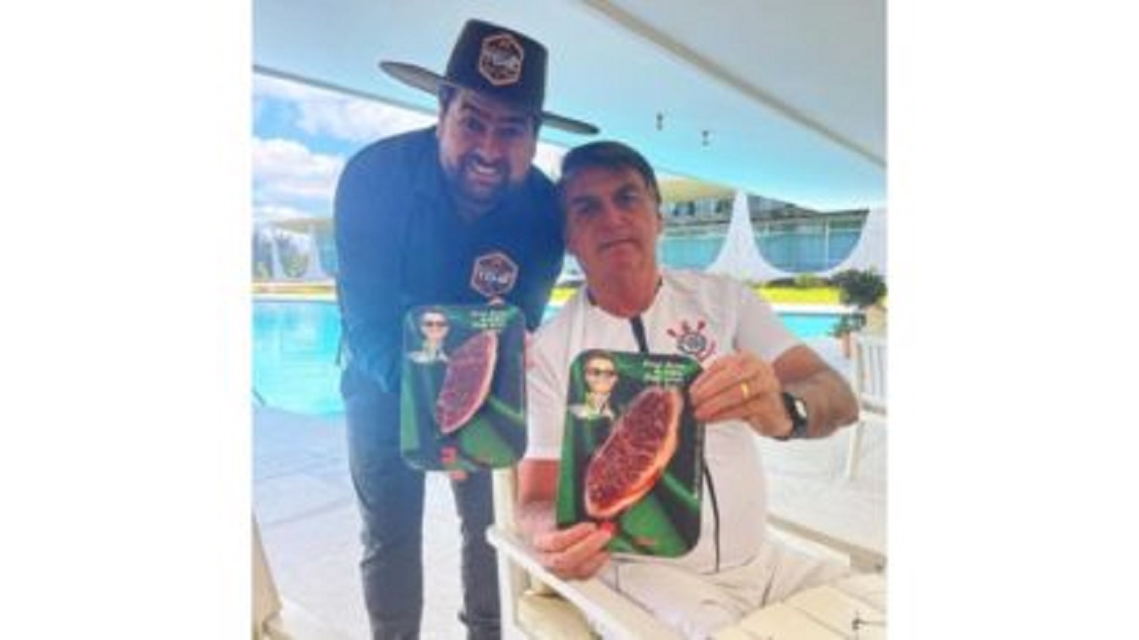 O churrasqueiro usou as redes sociais para publicar uma foto ao lado do presidente. Na imagem, cada um segura uma peça de carne, que tem uma embalagem personalizada com o slogan da campanha presidencial de Bolsonaro: “Brasil, acima de tudo, Deus acima de todos”.