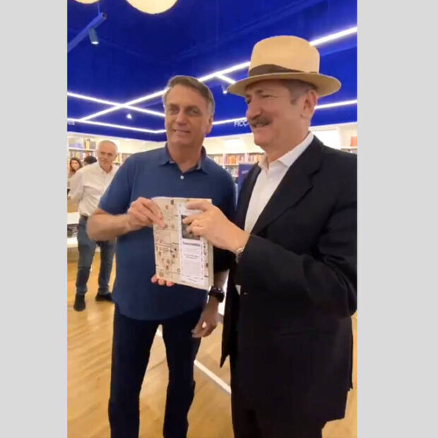 O ex-presidente Jair Bolsonaro (PL) foi um dos políticos presentes no lançamento de um livro sobre a amazônia escrito por Aldo Rebelo (MDB), atualmente secretário de Relações Internacionais da Prefeitura de São Paulo, sob Ricardo Nunes (MDB). Bolsonaro e Aldo tiraram fotos, sorrindo.