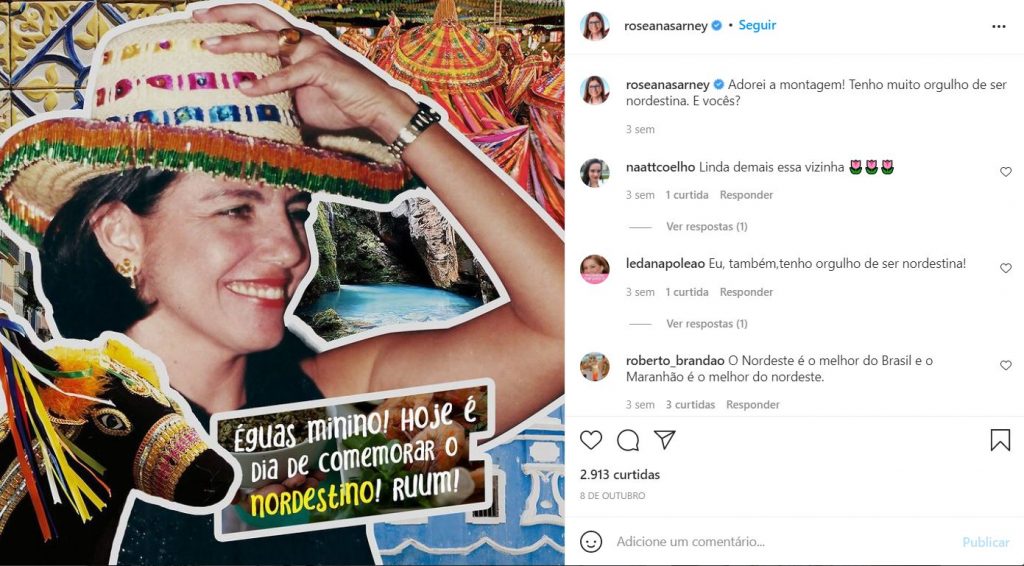 Governadora do Maranhão por quatro mandatos, Roseana Sarney (MDB) também trouxe mais leveza para as suas redes sociais desde o ano passado. Sem mandato desde 2014, quando deixou o governo maranhense, ela tem planos de voltar ao Congresso em 2020 como candidata a deputada federal.