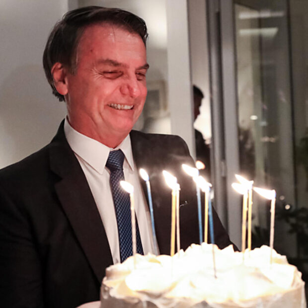 No vídeo, aparece a voz de Michelle Bolsonaro no fundo “Quem está fazendo aniversário hoje? Quantos anos?” e Jair responde “Eu” e sorrindo gesticulou o número 51 com as mãos, insinuando que essa seria sua idade.