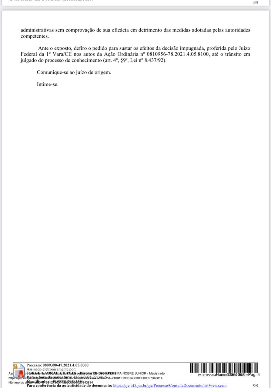 Nesta sexta-feira (13), uma decisão judicial proibiu o governador do Ceará, Camilo Santana, de barrar a entrada do presidente Jair Bolsonaro (sem partido) ao Cariri. A determinação vale para qualquer qualquer passageiro que desembarque no Estado.