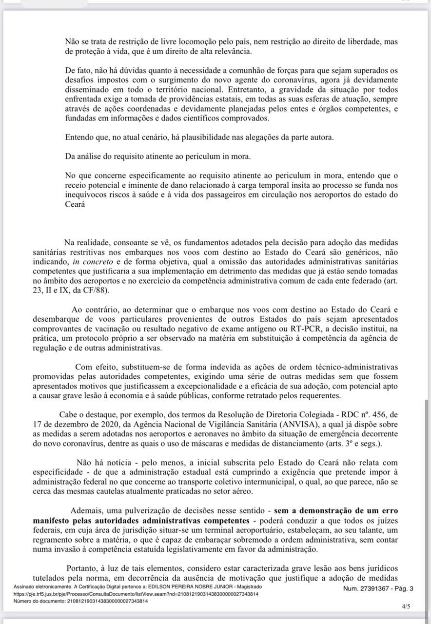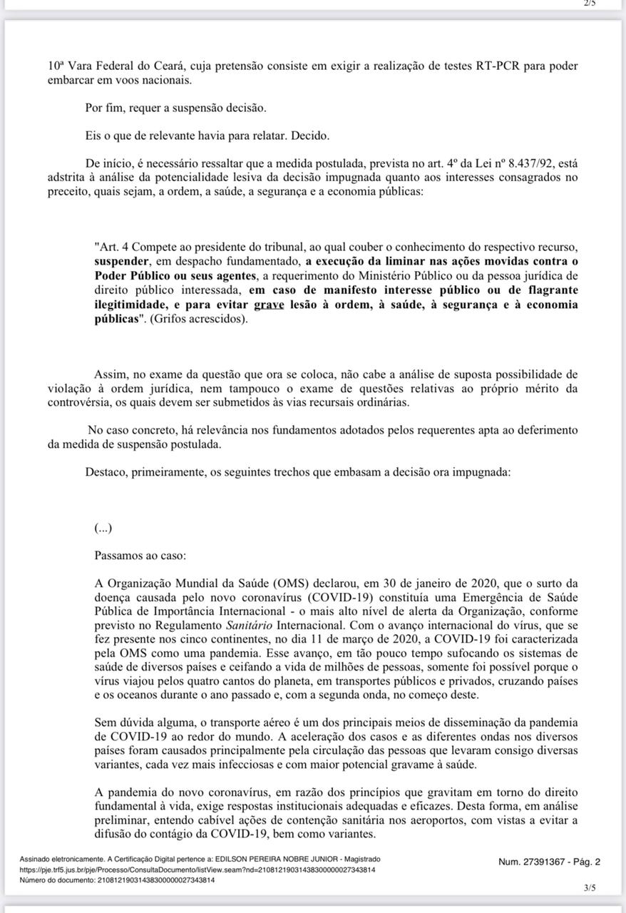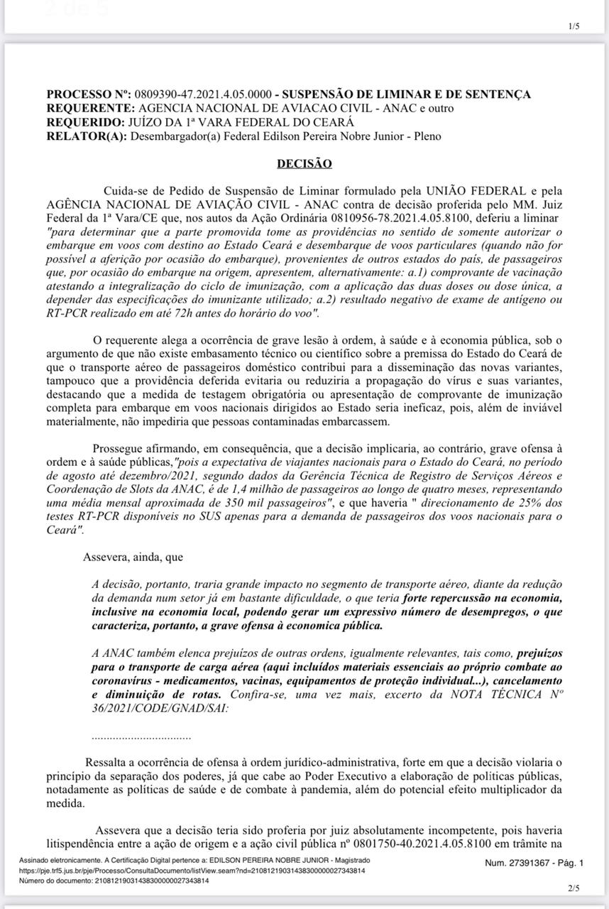 Por conta do avanço da pandemia, o Ceará foi o primeiro estado a exigir teste negativo de Covid para turistas. Passageiros de voos com destino ao Estado só embarcarão após apresentarem atestado de vacinação completa ou exame negativo para Covid-19 feito 72 horas antes da viagem. A decisão foi concedida na quarta-feira (12).