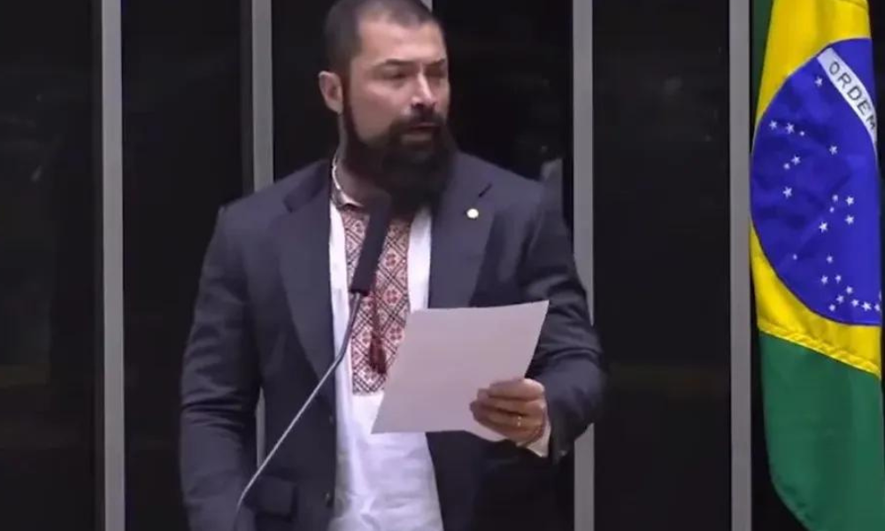 Vestido com uma camisa que enaltece o Dia do Vyshyvanka, uma celebração ucraniana, o deputado afirmou que fazia uma homenagem a suas origens e ressaltou o avô.