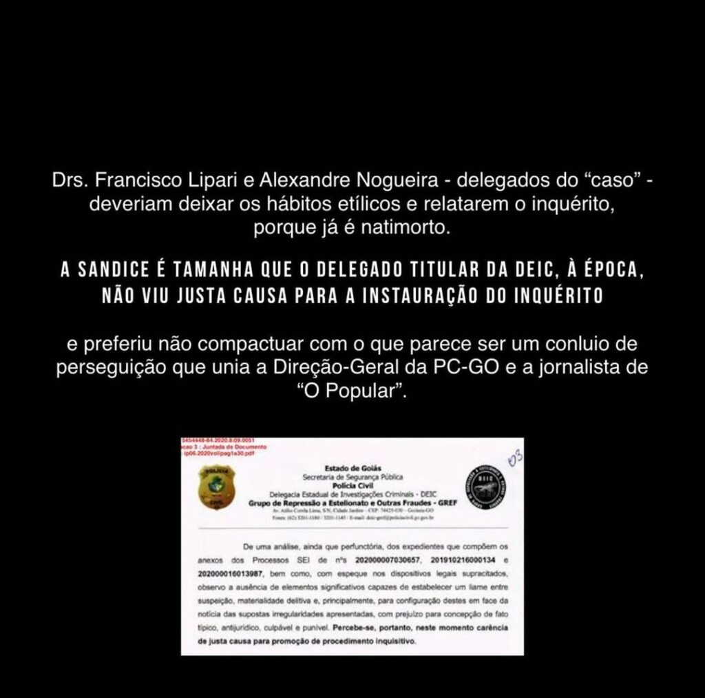 “Agora, o delegado responsável pelo pente fino quer mais tempo até conseguir um software mais incrementado para ver se acha pelo em ovo. Após três anos de perícia, precisa-se de mais tempo. A Justiça de Goiás se comporta como alguém que assiste ao replay de uma jogada várias vezes pra ver se uma hora sai o gol”, continuou.