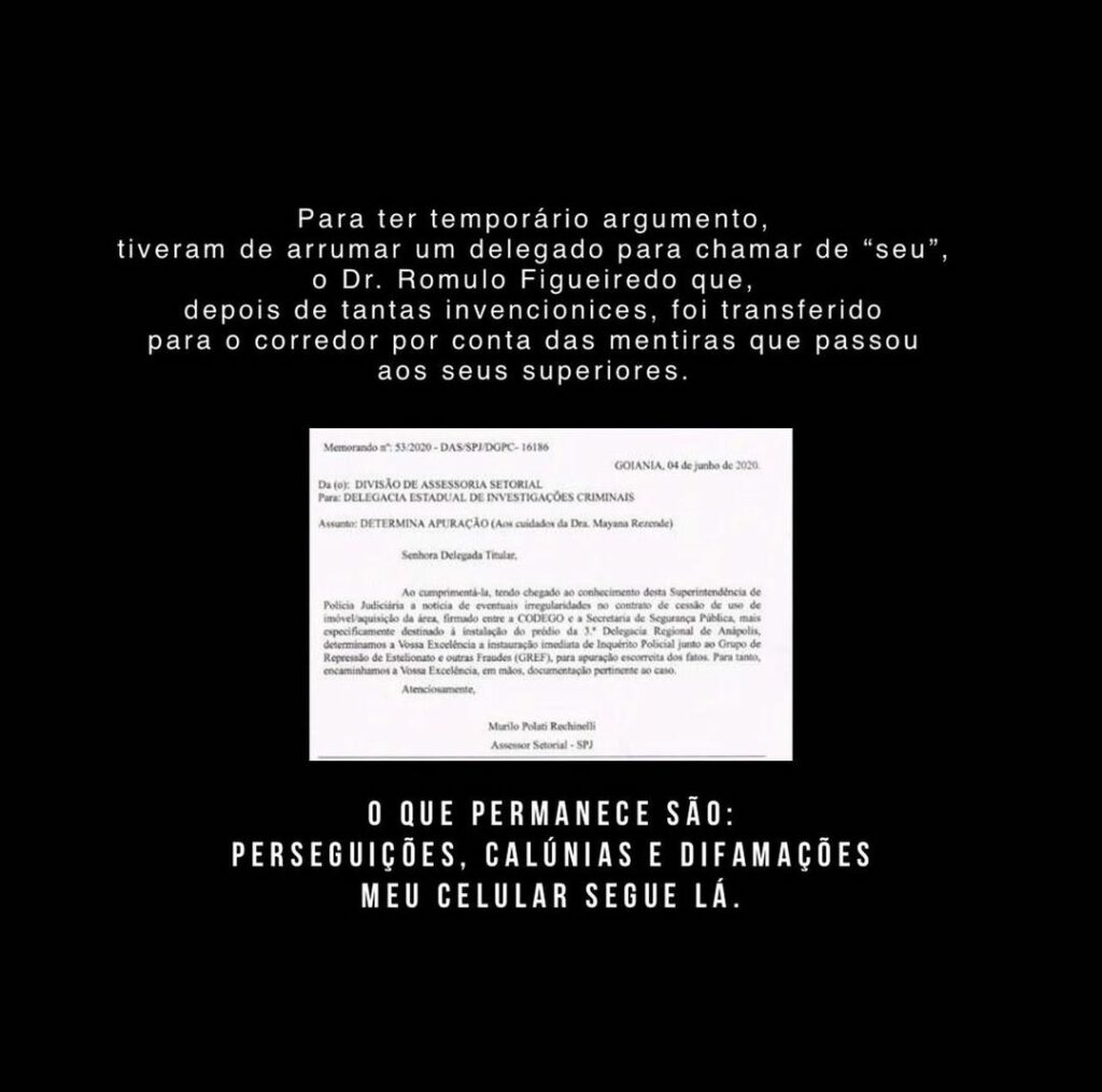“Há três anos, tive meu celular apreendido pela Polícia Civil de Goiás em uma das operações mais esdrúxulas já registradas. Neste período, peritos e especialistas vem ‘investigando’ o aparelho na tentativa de encontrar possíveis ligações minhas com políticos e possíveis atos ilícitos”, começou o empresário.