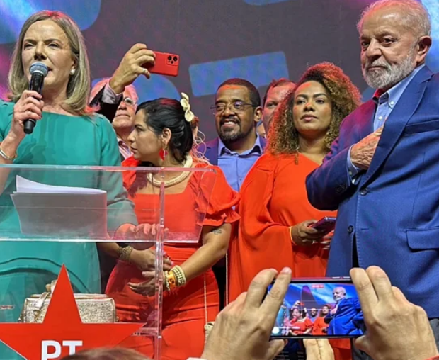 Janja pediu para Teresa Cristina cantar Brincar de Viver, de Maria Bethânia. “E eu desejo amar todos que eu cruzar pelo meu caminho. Como sou feliz, eu quero ver feliz quem andar comigo. Vem..”, entoou ela. O publicitário Sidônio Palmeira, marqueteiro da campanha de Lula em 2022, acompanhava os versos.