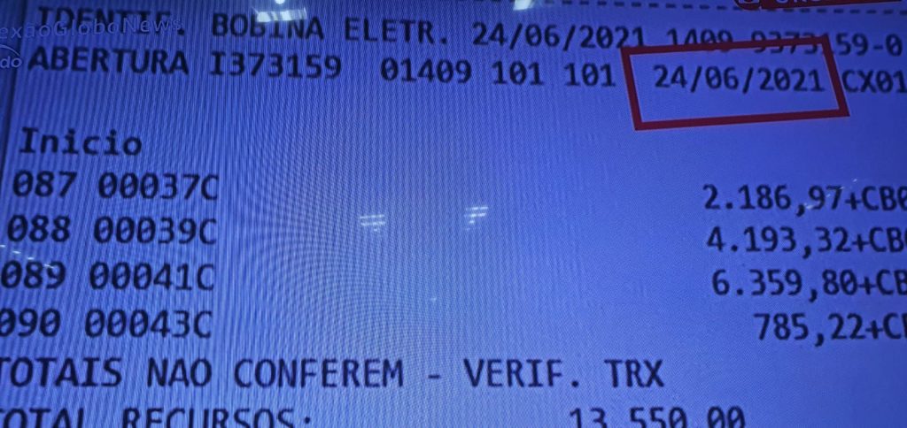Renan afirmou possuir fotos que comprovam o caso e mostrou duas delas. Na primeira imagem, Ivanildo aparece com um capacete na mão adentrando o banco no dia 24 de junho deste ano; na outra, aparecem os dados da transação bancária por ele realizada. O horário no comprovante bate com a chegada do motoboy. Veja: