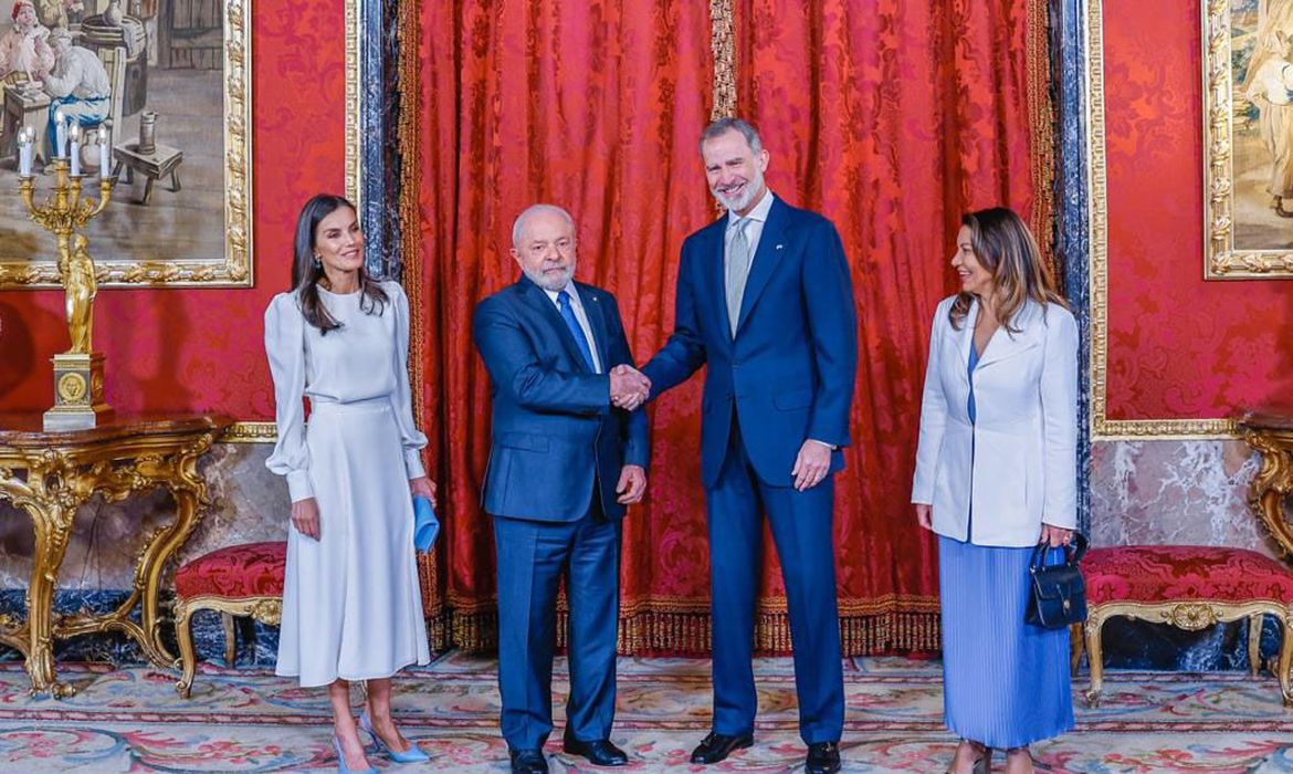 Lula está em viagem oficial a Europa desde sexta-feira (21). A agenda começou por Portugal, e na terça-feira (26) a comitiva brasileira desembarcou em Madri. Na capital espanhola, o presidente se reuniu com lideranças sindicais e participou de um fórum de empresários. Nesta quarta-feira, já esteve com o primeiro-ministro espanhol Pedro Sánchez, em cerimônia de assinatura de atos no Palácio de Moncloa e, na sequência, seguiu para o almoço no Palácio Real.