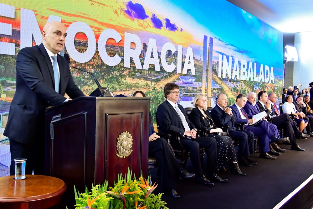 Moraes disse que a democracia venceu a “frustrada tentativa de golpe de Estado”, homenageou a presidente do tribunal à época dos ataques, a ministra aposentada Rosa Weber, e fez um duro discurso defendendo a regulamentação das redes sociais.