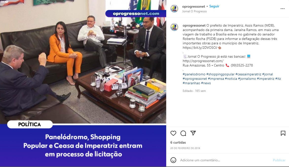 A Ceasa de Imperatriz teve o início das obras em novembro de 2019, após cerimônia de lançamento cujo registro em vídeo com o logotipo do senador continua disponível na internet.