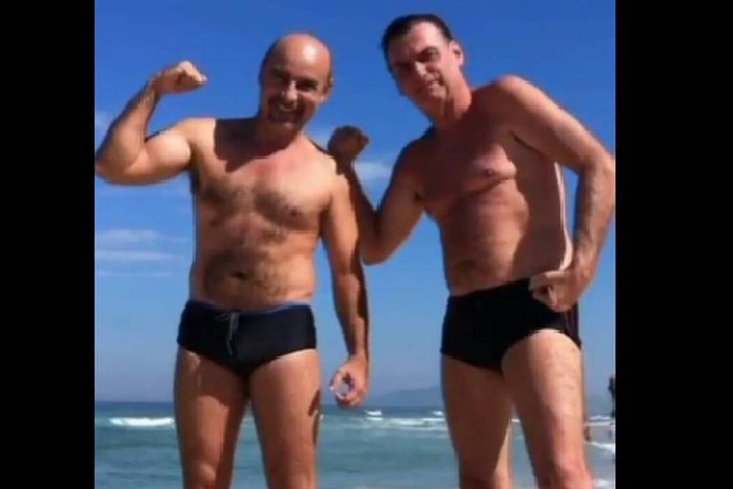 Em outro momento, a imagem mostra Queiroz e Bolsonaro posando na praia com a frase: “Um exemplo de respeito, amizade, integridade e conduta; esse é o meu irmão, por isso estamos juntos nessa luta”.
