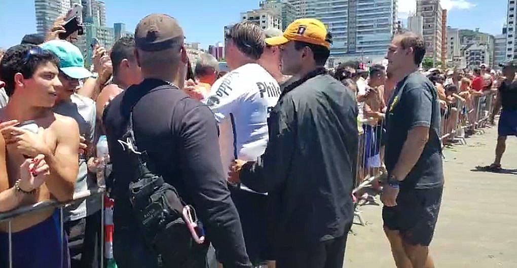 A aglomeração ocorreu em Praia Grande, cidade vizinha a Guarujá, onde o presidente passa o feriado de Ano Novo em um base militar. O presidente estava vestido com uma camisa do Santos, mas, em meio à aglomeração, a pedido de um apoiador, vestiu uma do Corinthians rapidamente.