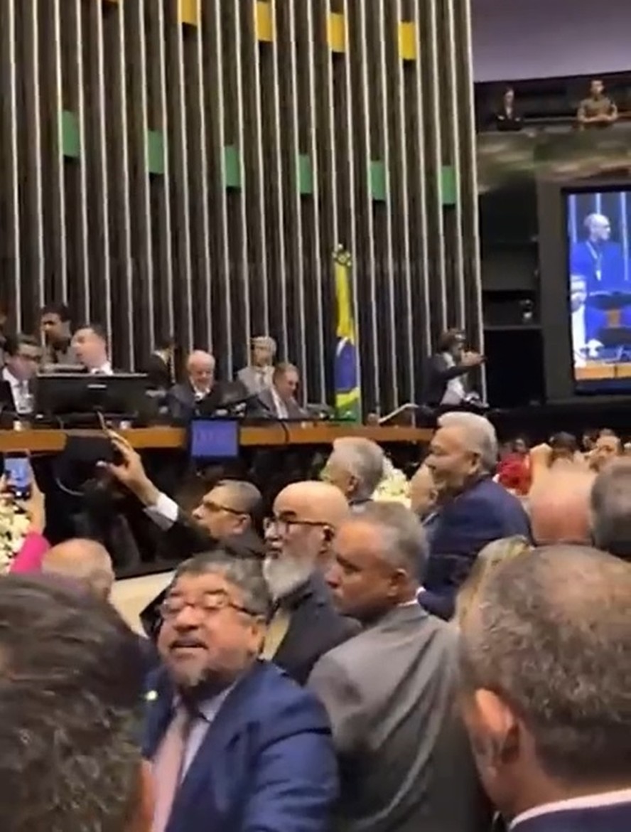 O deputado Washington Quaquá (PT-RJ) agrediu o deputado Messias Donato (Republicanos-ES) durante a sessão de promulgação da reforma tributária, que teve a presença do presidente Luiz Inácio Lula da Silva. Donato afirmou que registrará boletim de ocorrência sobre o incidente. A assessoria de um dos parlamentares gravou vídeo com a cena.