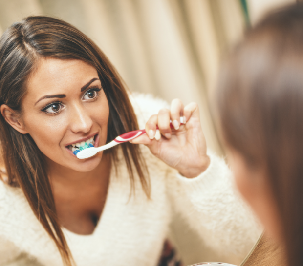 Escovar os dentes ou as próteses pelo menos duas vezes ao dia com uma escova de cerdas macias é fundamental. A escovação remove resíduos de alimentos e placa bacteriana, que podem causar cáries e inflamação nas gengivas.