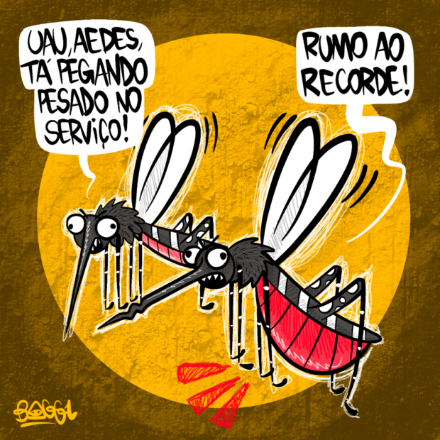 Num fim de tarde quente e vibrante, dois mosquitos se encontravam em meio a uma conversa entusiasmada e cheia de zumbidos. Enquanto um ostentava orgulhosamente sua silhueta robusta, resultado de uma tarde particularmente produtiva, o outro, observando o colega visivelmente mais satisfeito e cheio, não pôde deixar de comentar com um toque de inveja e admiração: “UAU AEDES, TA PEGANDO PESADO NO SERVIÇO!”