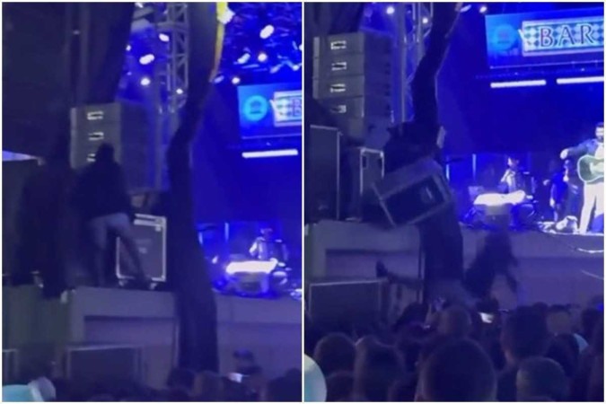Kátia Flávia Fã escala caixa ao tentar invadir o palco durante show de Gusttavo Lima e acaba caindo 26/05/2024 18h30