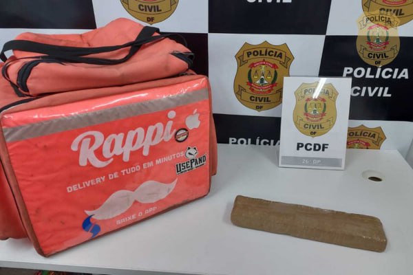 Brasília iDrogas: motoboy é preso com tijolo de maconha dentro de mochila térmica em Samambaia 07/02/2024 9h50