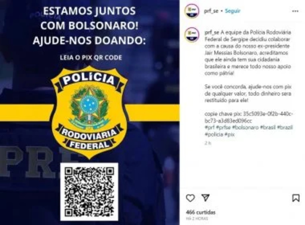 Política & Poder PRF em Sergipe publica ‘vaquinha’ via Pix para Bolsonaro nas redes; órgão alega ataque hacker 29/06/2023 11h58