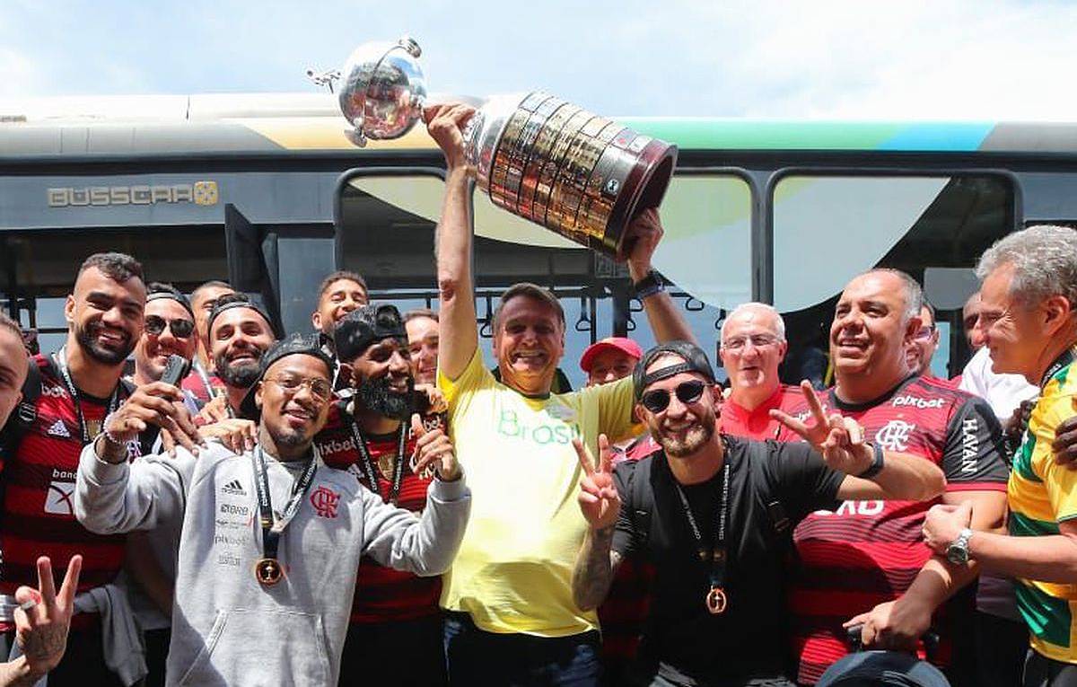 Política & Poder Bolsonaro vai ao Galeão recepcionar o Flamengo e posa com a taça da Libertadores 30/10/2022 12h12